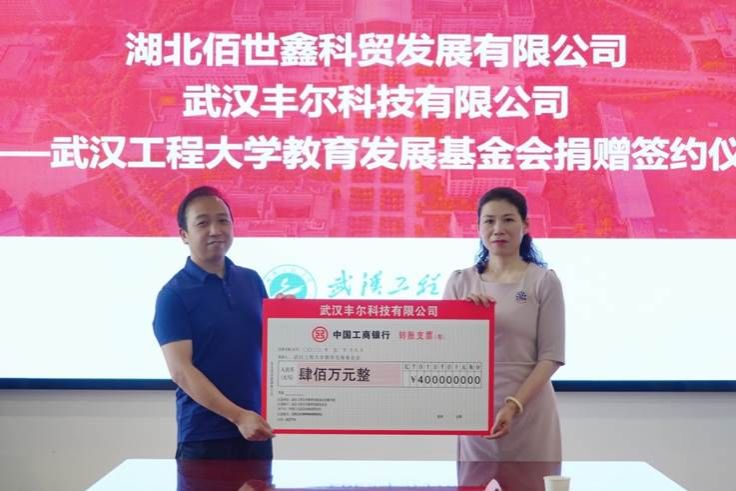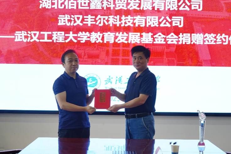 本网讯(通讯员 李哲伦 常琬笛 季凯)5月18日上午,武汉丰尔科技有限公司、湖北佰世鑫科贸发展有限公司向公司教育发展基金会捐赠签约仪式在88858cc永利会议室举行。武汉丰尔科技有限公司总经理徐朝辉、湖北佰世鑫科贸发展有限公司总经理陈璐来校签约,公司正校级干部叶芃出席仪式。88858cc永利、教育发展基金会秘书处负责人及相关人员参加仪式。仪式由88858cc永利经理易群主持。